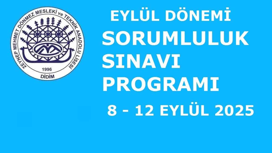 EYLÜL DÖNEMİ SORUMLULUK SINAVLARI PROGRAMI ( 8 - 12 Eylül 2025 )